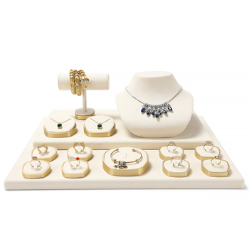Yüksek kaliteli bej yüzük kolye küpe ekran rafları takı ekran setleri bej takı ekran sahne