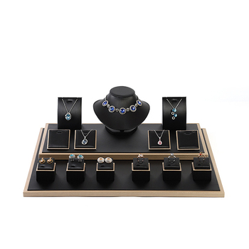 Özelleştirilmiş siyah deri takı ekran standı yüzük kolye küpe depolama high-end takı ekran sahne