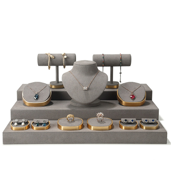 High end mikrofiber metal takı ekran standı yüzük kolye bilezik ekran seti takı ekran sahne